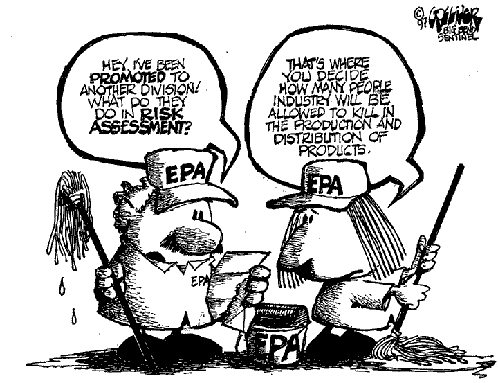 This burden of proof stuff is no joke. To rule against a chemical, the EPA must show the chemical presents an “unreasonable risk”. What is unreasonable? To determine this risk, the EPA must evaluate not only health and environmental effects and exposure, but also the benefits of the chemical, the availability of substitutes, and the economic effects of a rule. (Cause if 100,000 Americans/yr get cancer from it, it might still be ‘worth it’). Whew! And all that with taxpayer money! No wonder very few of the 75,000 chemicals on the TSCA inventory have ever been assessed directly for harm. Wouldn’t it be nice to know the risks associated with all of those chemicals? And might it make more sense for industry to shoulder the substantial costs of chemical risk assessment?