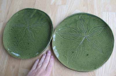 These are pieces from the end of last quarter when I was hand-shaping using leaf, seed, and cone impressions. I look forward to doing more of this when these objects are again at hand!
