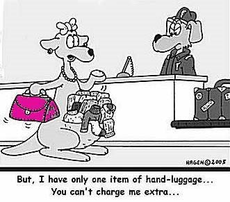 On May 21, 2008, American Airlines announced its plan to follow the lead of European airlines and charge customers a fee for each checked bag. This is not a particularly good solution to increased fuel costs. It penalizes those of us who check a bag instead of dragging our luggage into the cabin and stuffing it into an overhead bin, a practice which, I might add, wastes everyone’s time by slowing boarding both on and off the plane. A much better solution would be paying for the total weight you want the airline to transport. That includes you, your luggage, and your carry-on. Discriminating against heavier people? Yes, and against people carrying lots of heavy stuff. But it’s fair. Fuel costs are directly related to how much weight the plane is carrying. More weight = higher cost. When you take a package to the post office they don’t charge you a flat rate, do they? No, they weigh the package you want them to transport. It just makes sense.