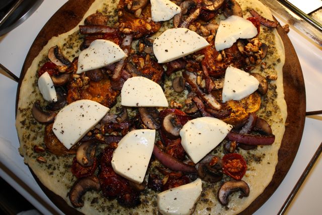 The first night we made pasta with them, bit of oil, goat cheese, cracked pepper, fresh basil and oregano – WOW! Last night we put them on a homemade St.Louis style pizza with pesto sauce, caramelized red onion and pine nut, sauteed mushrooms, and mozzarella. The tomatoes are unbelievably good. I stuck the leftovers in the fridge in a glass jar, one covered with oil, one not.