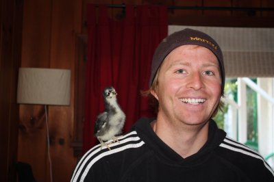 They seem to like us. They jump up onto our hands when invited. Rocky goes from there to the box edge, or occasionally someone’s head (sorry Liz), but Greta and Aussie are happy to be petted. Greta will sit right down and chirp. Aussie is a little more inquisitive. When Walter dropped by last weekend, she walked right up onto his shoulder – so cute!