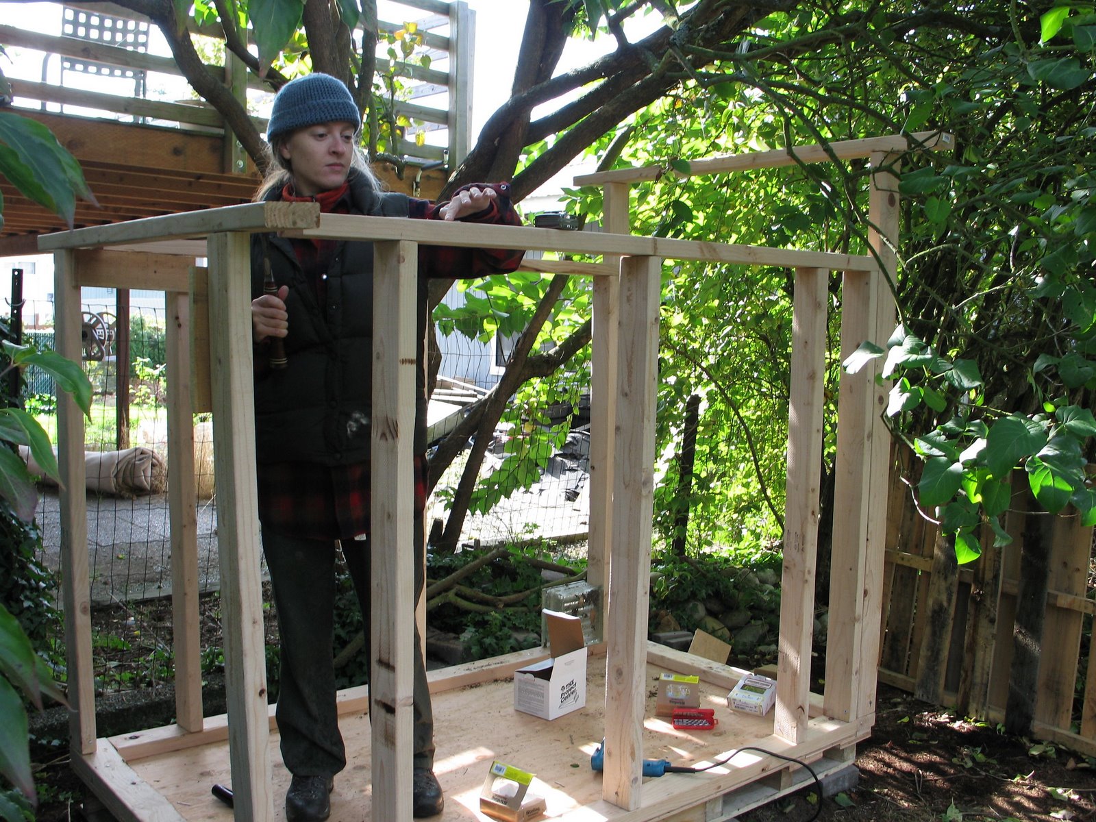 It is time. Inspired by Michael Pollan’s ‘Education of an Amateur Builder’, as well as the Money Pit experience of new home ownership, we are building our own chicken coop. After MUCH deliberation, we decided on 20 sqft (3.5’x5.5’ ) rising 4’ to 5’, accommodating 3 nest boxes and 3 roosts of various heights to keep our wee flock entertained during the long wet of the Pacific Northwest. The run will follow as they don’t yet have enough feathers to hang out in the chilly outdoors.
