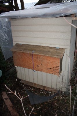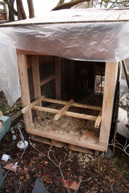 I still have to seal some imperfect joints against drafts, and shingle and paint the box, but I’m pretty happy with the result. Hope the chickens like it too…