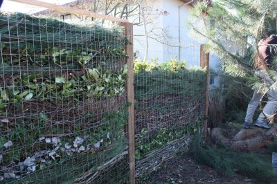 Trim, layer, trim, layer. That’s the sound of us filling our composting fence.