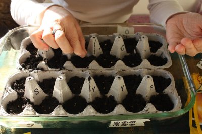 It no longer freezes at night, buds are swelling on our trees, and our chicken Baracka wants to mate. Spring has arrived. For my part, I frantically plant seeds that my books tell me I could have planted last month, some outdoors, some in. Two weeks ago I planted tomato seeds from 2008 in egg cartons in the kitchen windows. I also started other longer season crops like onions, peppers, and eggplant (yes, I may be dreaming).