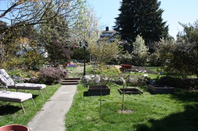 One lone spear of asparagus has emerged from the scrawny octopi that came labeled as asparagus crowns 3 weeks ago. Hopefully more will follow. I’ve planted peas, cabbages, carrots, kale, fennel, parsnips, and onions. Marigolds, nasturtiums, and dill were sown at the bed ends to encourage beneficial insects. And so it has begun! Every day a new adventure!