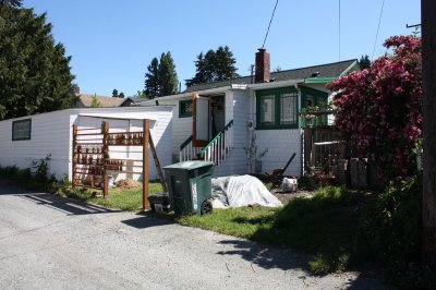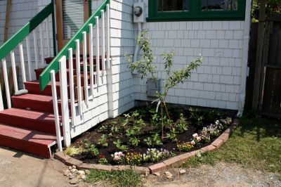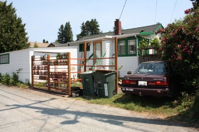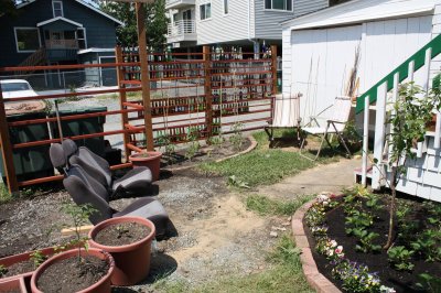 Although equipped with a huge and elaborated front yard, the back yard of our house is tiny. One hop, one skip, and one jump from the back door and you’re in the alley. Not a lot of opportunity for quiet reflection in the rare and precious sun of a fall or winter afternoon – especially with the fleet yard of O’Neil plumbing just off portside. The only reason this matters is that in the off-season this western exposure gets the best sun on our property.