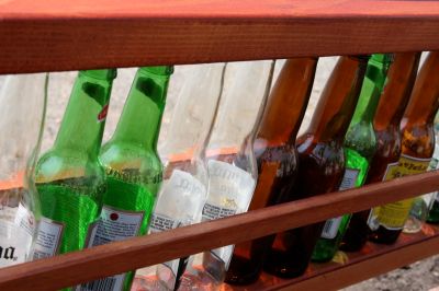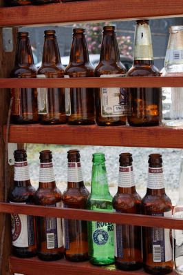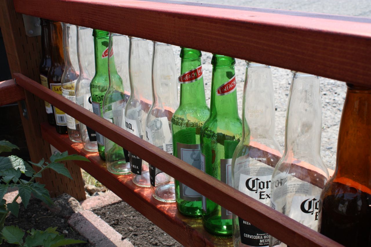 So we started accumulating bottles. I was thinking wine bottles, but Scott thought beer would be more appropriate along the alley. Plus he wanted to call the project ’99 Bottles of Beer on the Wall’. We ended up with a mixture of beer and wine.