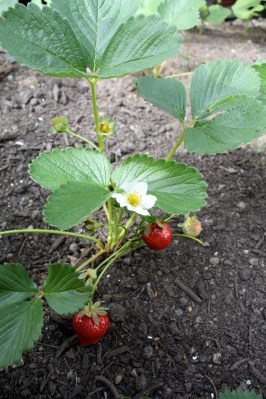 First strawberries! Saved up enough for strawberry shortcake last night. So good, Scott didn’t even miss the whipped cream I forgot to make. I planted two varieties (Tristar and Seascape) but of course forgot to mark which was which. Now I want to know cause one variety makes large strawberries, the other small. [I think it is Seascape that is the larger, tarter variety.Β Tristar is smaller and sweeter.]