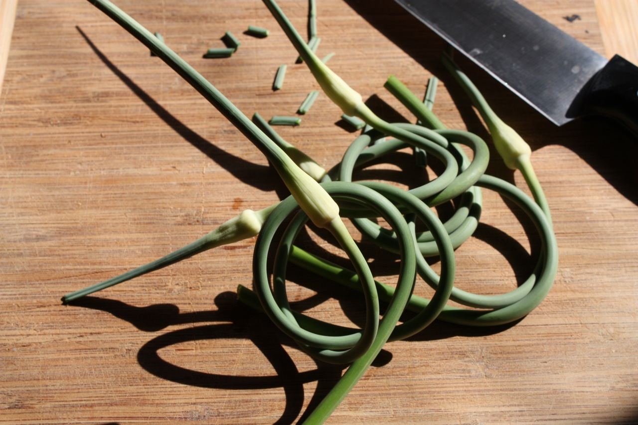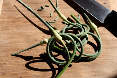 Greta’s double yolker with garlic scapes and kale made a perfect meal for the two of us