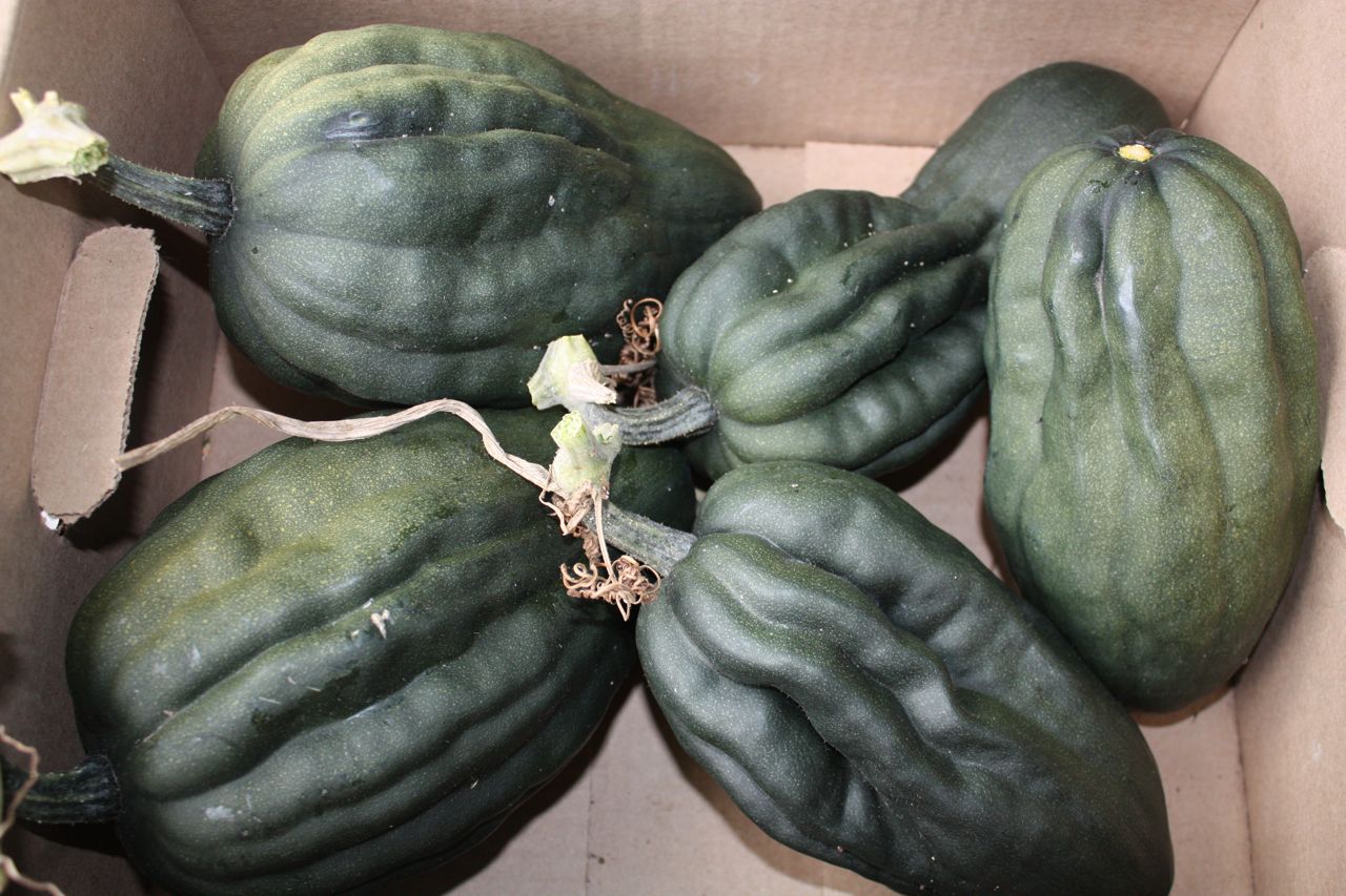 Gold Nuggest and Royal Acorns. Now snuggled away in the bedroom closet with the garlic.