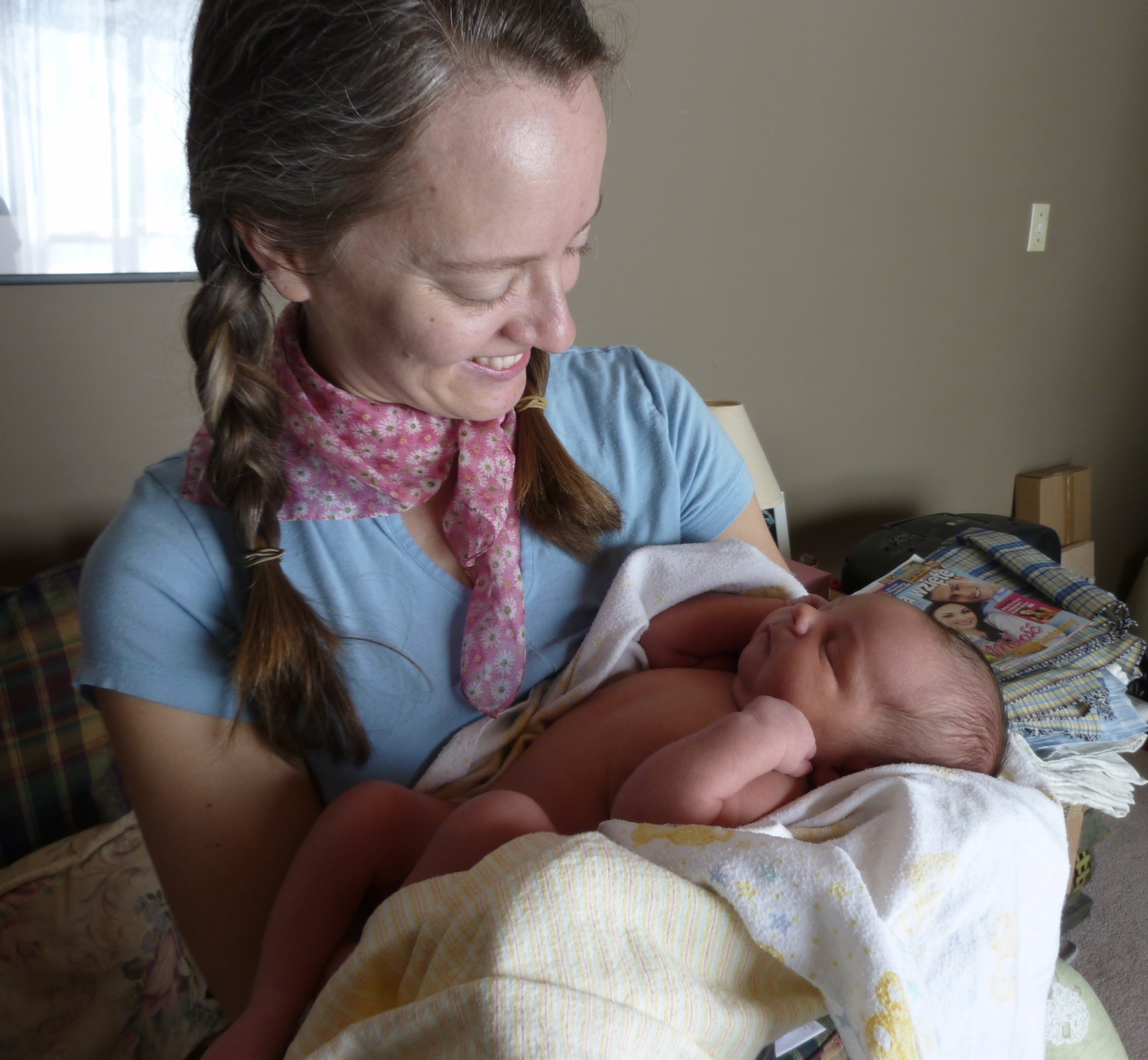 For my part, I tried to help. I did the laundry. I cleaned. I made Tobi sleep. I learned how to hold and comfort a newborn, how and when to change his diaper, how and when to feed him, how and when to burp him. I took pleasure in the age-old pasttime of staring at the baby – he was so funny! I loved when he’d fall asleep in the middle of the awkward process of burping a small creature who cannot even sit up. The simple pleasure of his small warm body in my arms.
