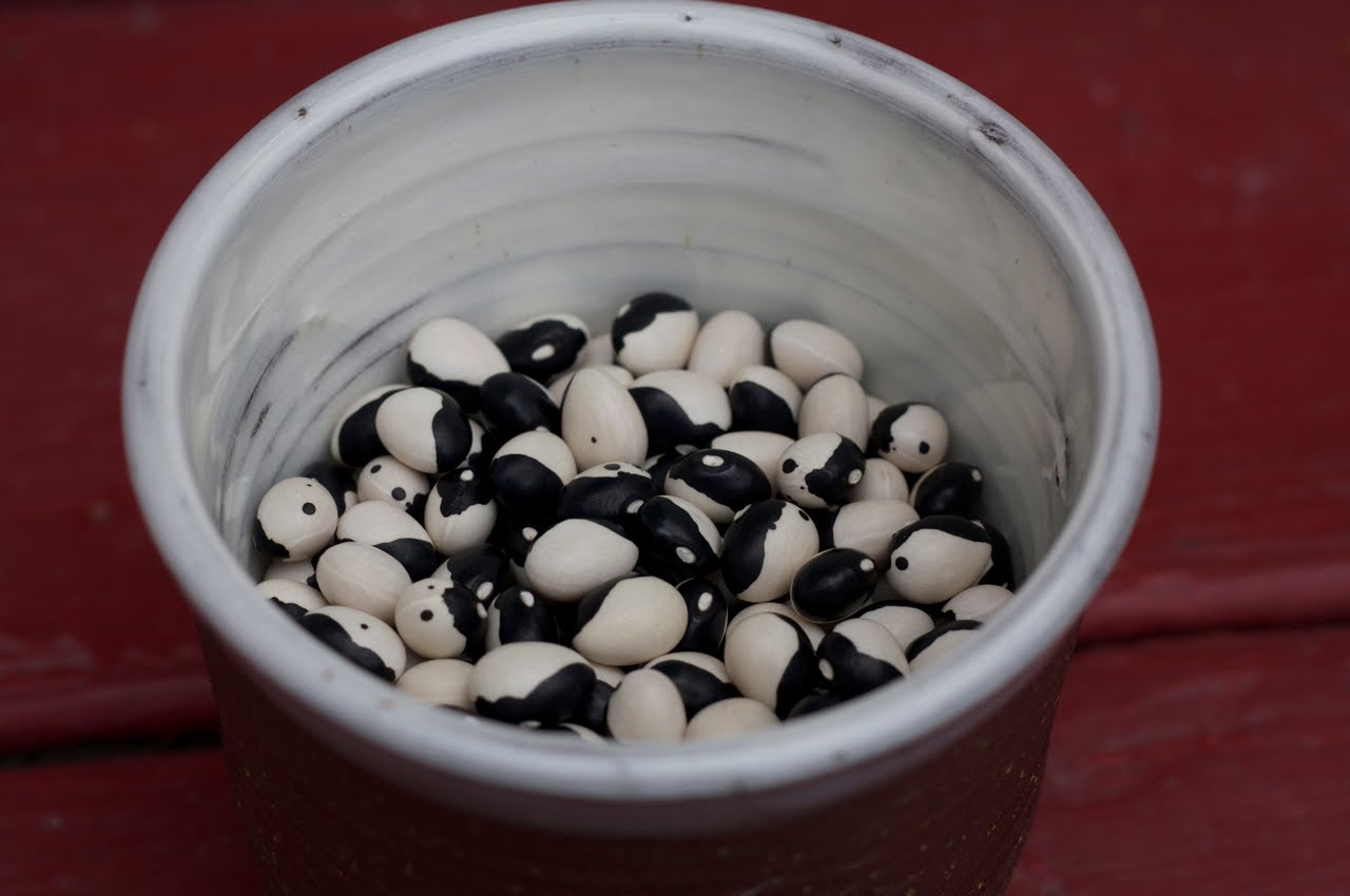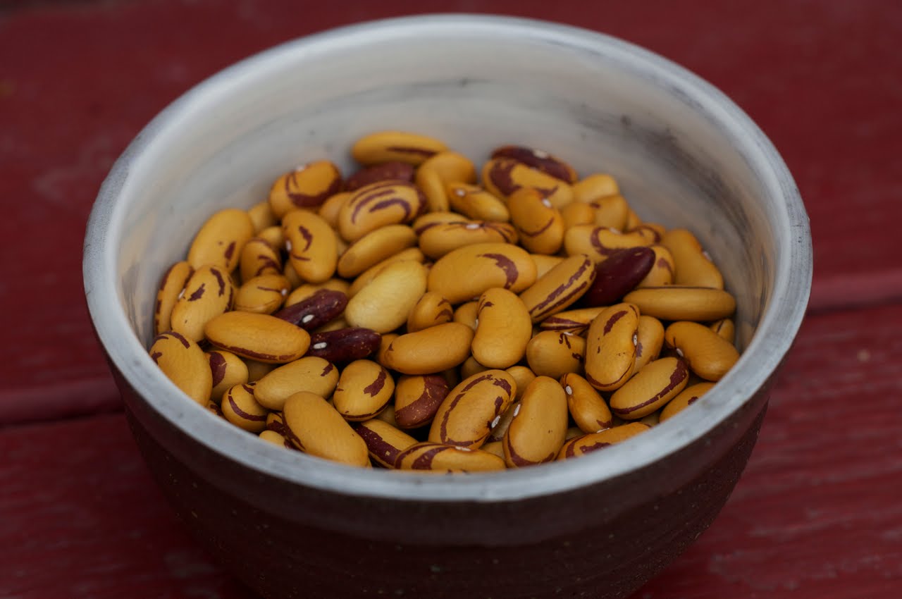 Possibly the most exciting time of the garden year is when I pick my shelling beans. Planted in May when the soil gets nice and toasty, the bush beans grow like snap beans at first – and can be eaten as such if you are not waiting for the dry September jewels.
