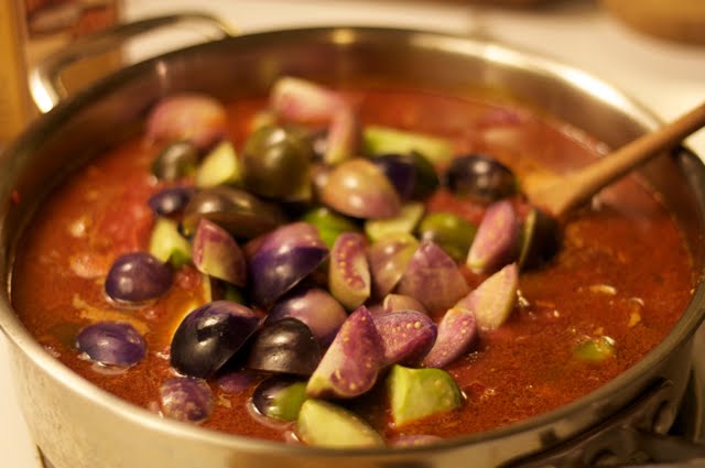 Scott invented a new tomatillo dish. It’s savory and spicy, with browned pork.