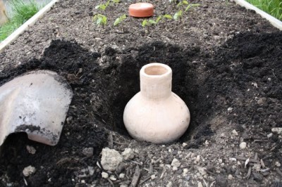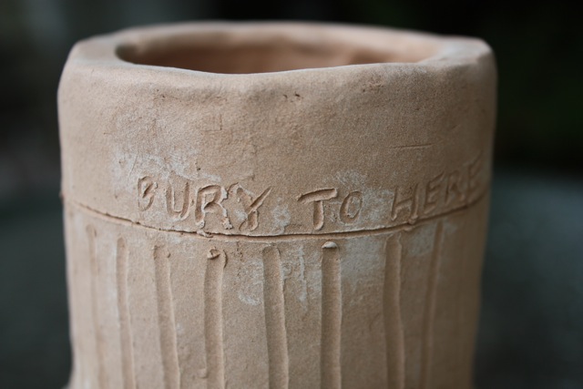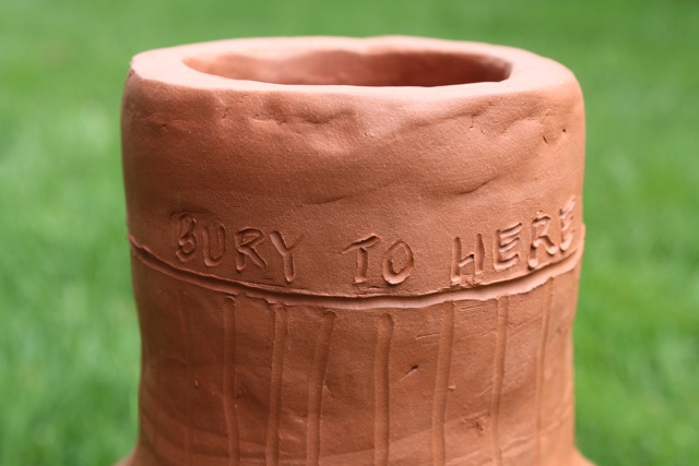 When I dug up the ollas from the bean bed I was able to see that the roots of the bean plants had indeed grown in a solid mat around each olla. That is exactly what I was hoping for.