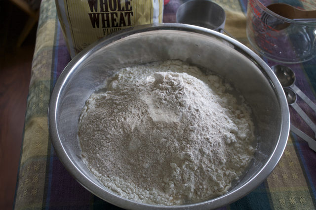 Next is the flour. For this recipe, it is 5.5 cups of AP white flour and 1 c whole wheat bread flour.