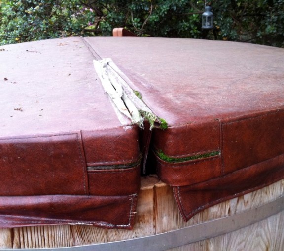 - hot tub lid was old, and cracked, and grew moss; clearly heat and moisture were escaping