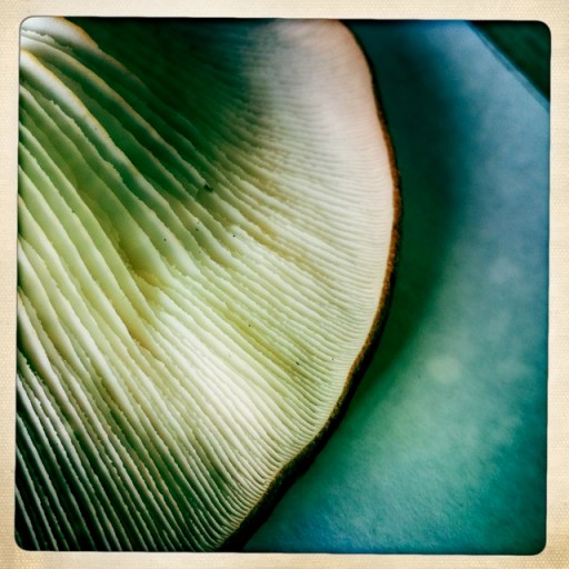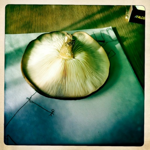 This spring, for the first time, we saw a mushroom ‘flowering’ on one of the logs. It bloomed, and became quite large by the time I finally picked it to ID.