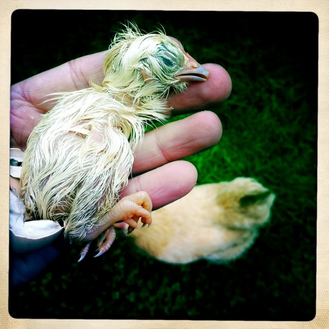This morning I found a beautiful, perfect, dead baby chick in the nest box with the fertilized eggs. Down still matted, eyes still shut tight. Calamity Jane, the would-be mother hen, was sitting on a clean empty nest next door.