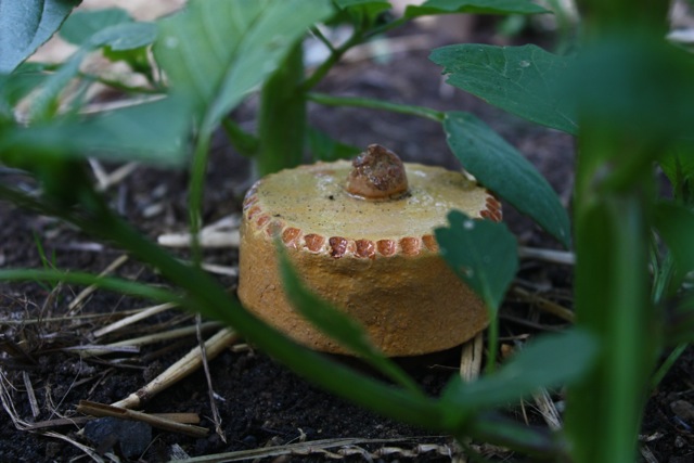 With so many sizes and clay types, it has been difficult to determine which ollas work best. What I have noticed so far is that the brown terracotta ollas empty first. They are more porous. What remains to be seen is whether plants do better with a more porous olla. There are still so many factors; location, plant type, plant variety, climate. This year I will follow the success of the plants fed by the brown terracotta ollas on the curcurbits, tomatoes, and tomatillos compared to those plants fed by the less porous ollas to determine whether or not brown terracotta clay should be used to make new ollas.