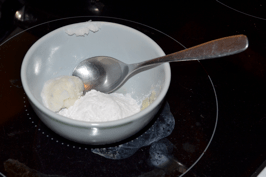Step 1. Measure out equal parts by volume coconut oil, baking soda and arrowroot starch. I generally use 2T as my unit (i.e. 2T coconut oil, 2T baking soda, 2T arrowroot) since that amount fits well in my container and will last for several weeks.