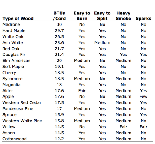 Two years ago, I researched wood to burn in our fireplace. I felt lucky when we got a good deal on a cord of white oak from eastern Washington. A bit wet when it arrived, it was still hard to burn after drying out and requires splitting to burn well. I have been using a sledge hammer and an old axe head to start things off, then a splitting wedge if that doesn’t finish the job.