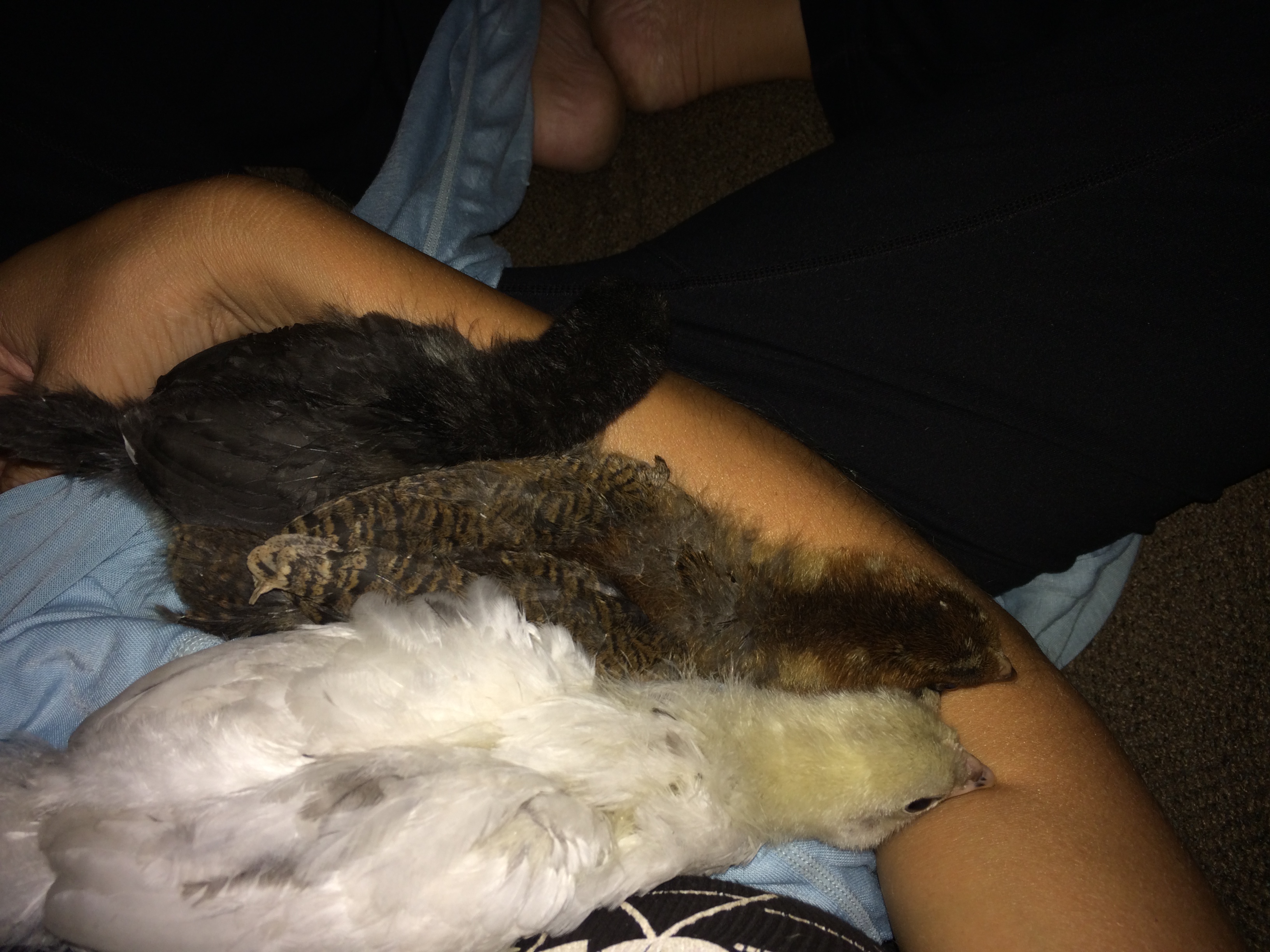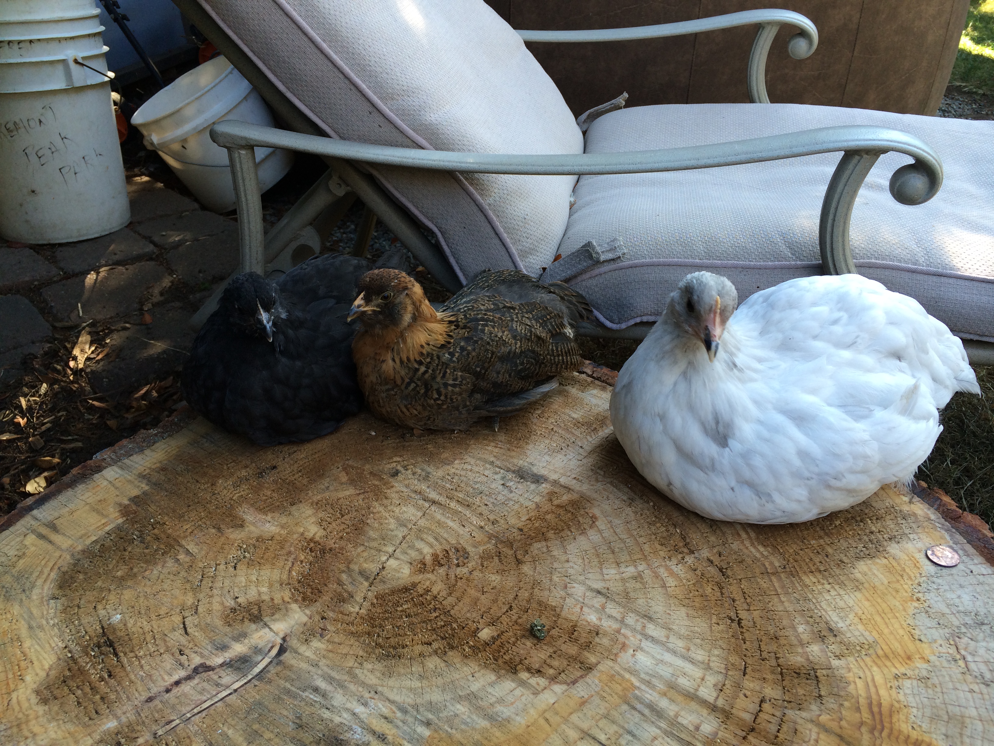 The new babies were awesome! It had been years since we had raised our own chicks and we had tons of fun brooding in the fireplace, taking them outside when they were small, and then letting them run free range after we’d moved them out to the coop. They had taken to coming to visit me whenever I came out into the yard, eventually sitting with or on me for a bit to preen themselves (or me!). We were really worried that Frankie, the blue splash marans was a boy. These were all ‘sexed’ chicks, but she was big, had a honky voice, and we didn’t have any experience with her breed.